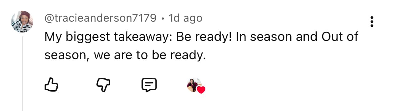 Hey Reader, If you’ve been thinking about joining the Thessalonians Challenge, this is your reminder that it’s not too late to begin. You can still jump in and catch up in just one week. Each step is simple and intentional. Read the chapter, watch the teachings, and then use the study guide to go deeper and reflect on what God is revealing to you. It’s not about rushing through, but about creating space to truly engage with His Word. All of the teachings are available for you to go back and watch at your own pace, so you can start right where you are and move through the challenge in a way that feels steady and meaningful. This is your invitation to step in. You don’t have to be behind. Just begin. 1 Thessalonians Chapter 5: Why Spiritual Alertness Matters More Than You ThinkCatch Up on the TeachingHere's What People Are Saying About The StudyJoin the Conversation Don't Miss the Next LiveAdd it to your favorite calendar tool
